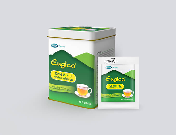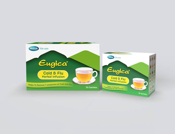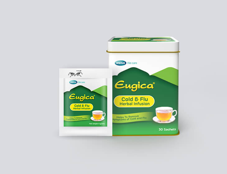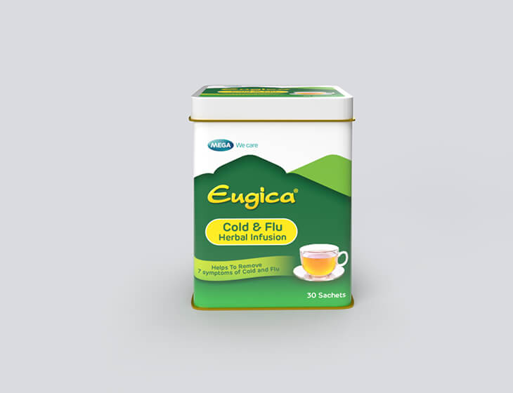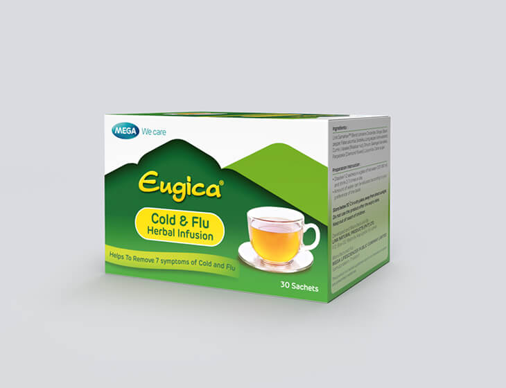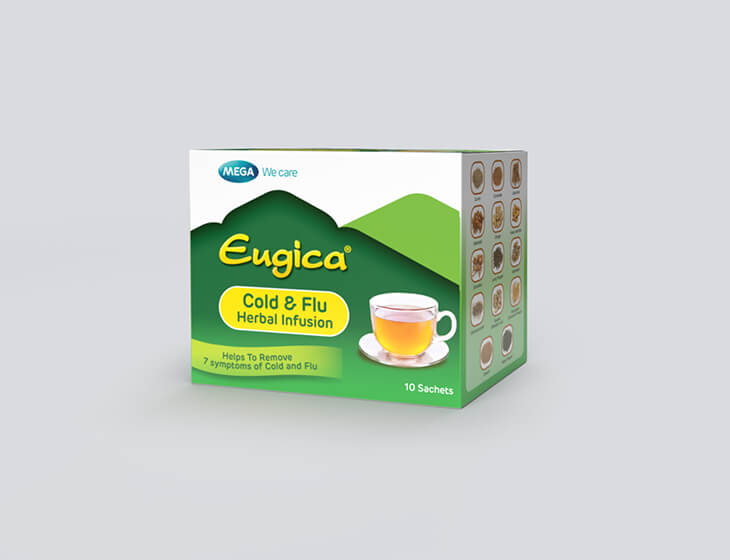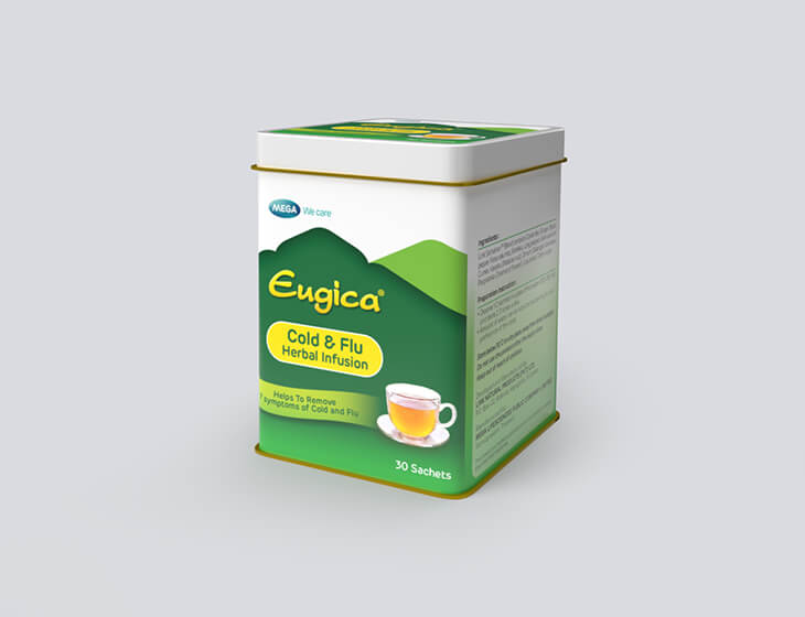 Eugica herbal infusion is a clinically proven blend of herbal ingredients that are a suitable for prevention and treatment of cold and flu symptoms in everyone from children above three years of age to the elderly. This formulation utilizes a proprietary blend of ayurvedic medicinal plants like coriander, ginger, black pepper, false calumba, siritekku, long pepper, vishnukranthi, cumin, vasaka (Malabar nut), omum, galangal, kantakari, parpataka (diamond flower), liquorice. It can help manage cold and flu naturally, without side effects and reduce dependence on antibiotics and reduce incidence of antibiotic resistance.