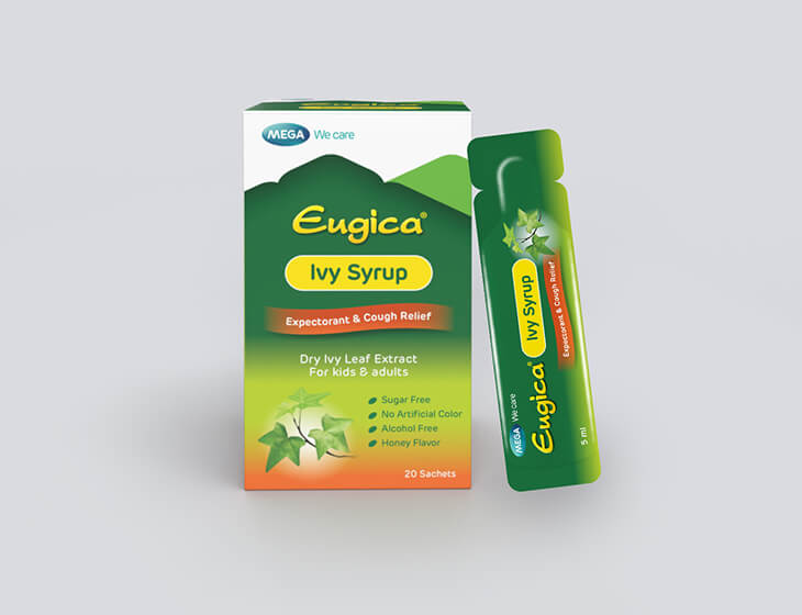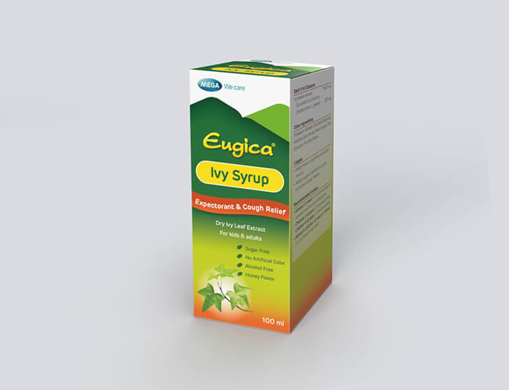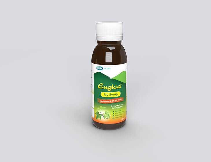 EUGICA IVY SYRUP is a unique and tasty formulation containing Hedera helix (Ivy leaf extract).. It is useful in controlling and managing conditions in which there is hypersecretion of viscous mucous, and also exerts anti-microbial activity thereby, helping to treat the root cause of cough. As per the clinical study, effectiveness of Ivy leaf preparations for productive cough is not less than ambroxol and acetylcystine. It is fast acting and safe and can be used in children over 2 years old and even the elderly. It has a unique honey flavor and is sugar free, alcohol free and does not