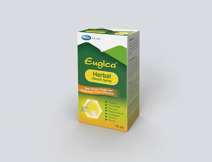 EUGICA HERBAL MOUTH SPRAY is a fast-acting, natural, and safe solution for sore throat, cough etc. The combination of herbal ingredients in the spray formulation targets the sites of discomfort with more ease and offers quick relief from irritation and inflammation of the mouth, throat, and upper respiratory tract.